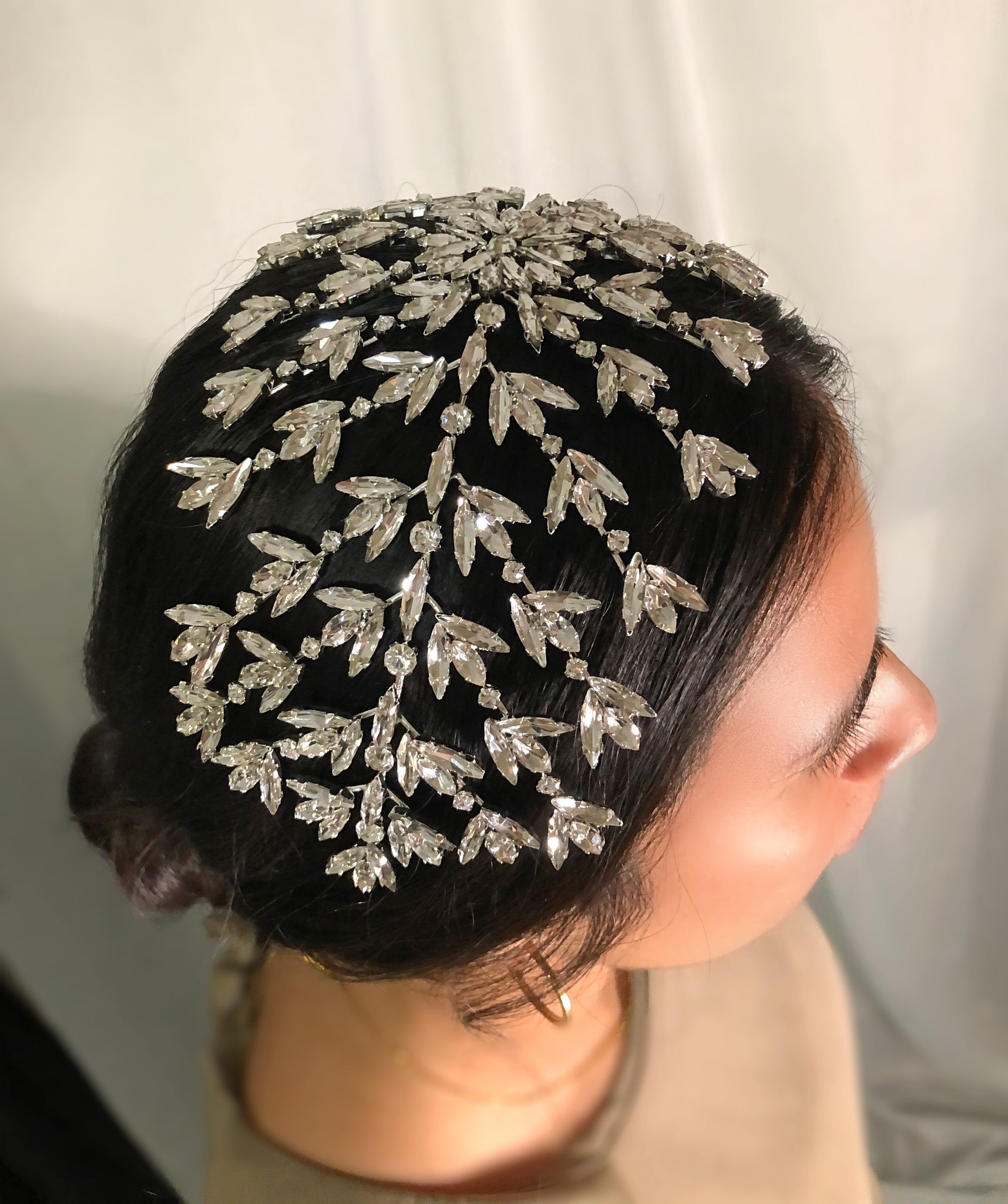 A stunning headpiece perfect for a glamorous bride. Flexible to fit anyone.